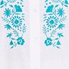Para agregar encanto al uso diario, la blusa presenta un delicado bordado en contraste en la parte delantera y mangas cortas. Su corte es sencillo pero efectivo con cuello camisero, tapeta de botones, pliegue plano bajo el canesú trasero para brindar holgura. Base derecha.