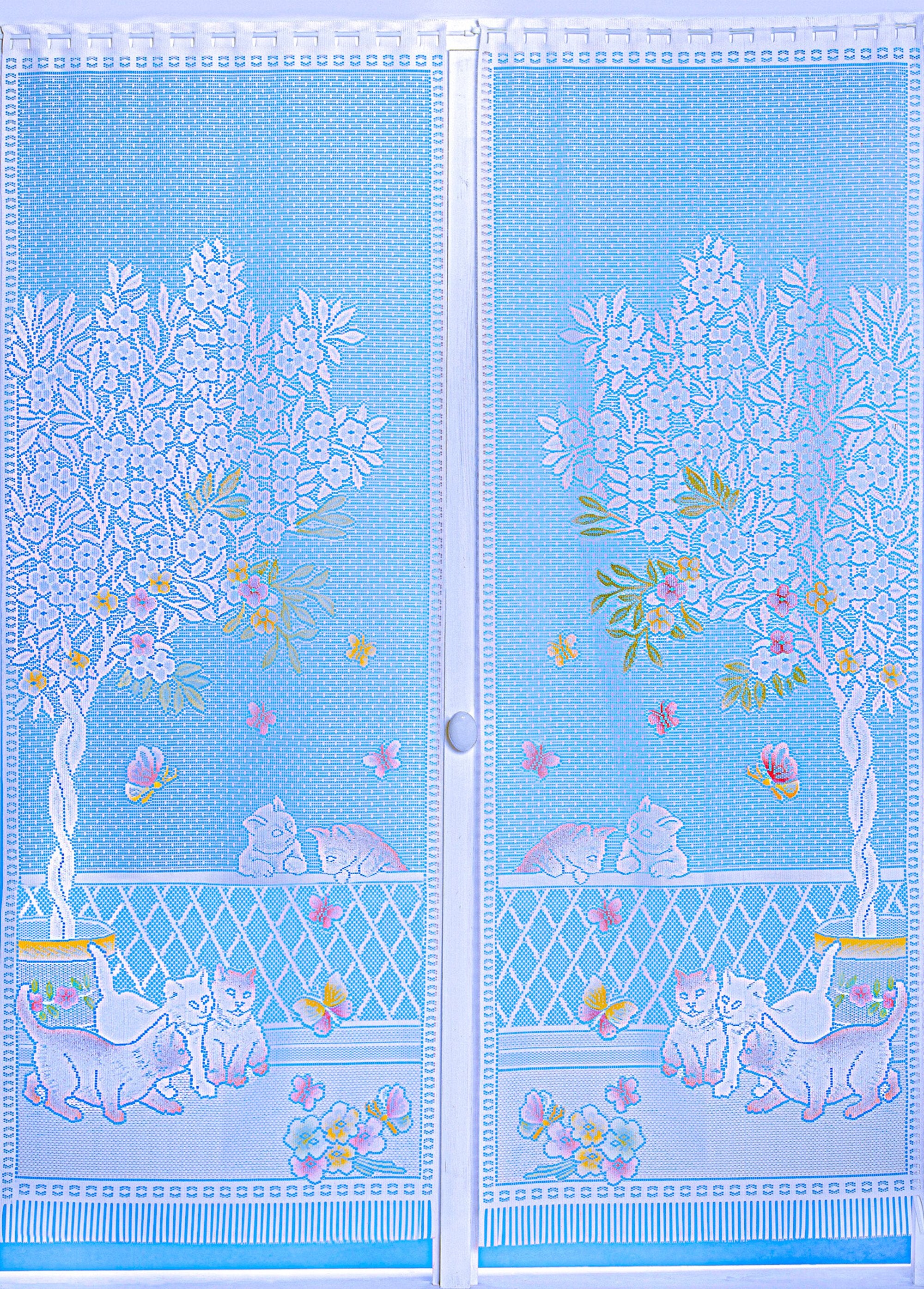 Te protege de miradas indiscretas... Para darle vida a tus ventanas, el acristalamiento recto presenta un encantador diseño de "gato". Se vende por pares y está disponible en blanco o pintado. Fácil de instalar gracias a su dobladillo para varilla. Cabezales cortados en caliente. Base recta.